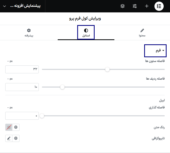 استایل فیلدها در افزونه کول فرم‌ کیت پرو | فرم ساز پیشرفته برای المنتور