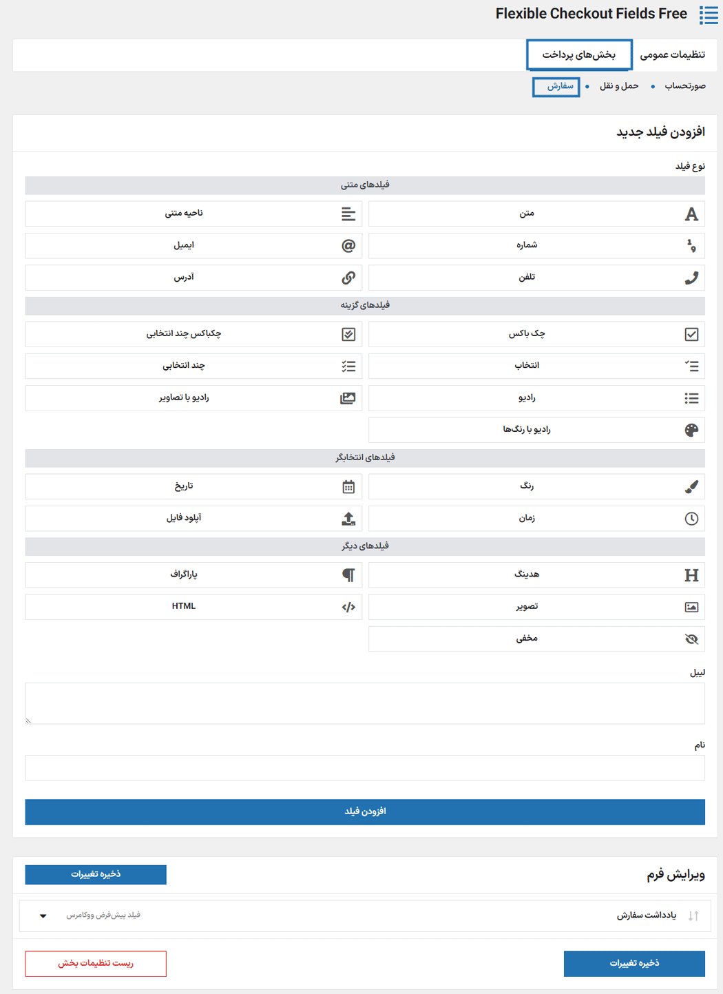 - ویرایش و اضافه کردن فیلدهای پرداخت