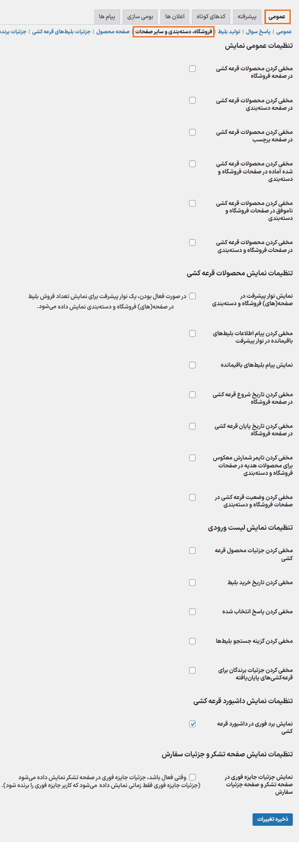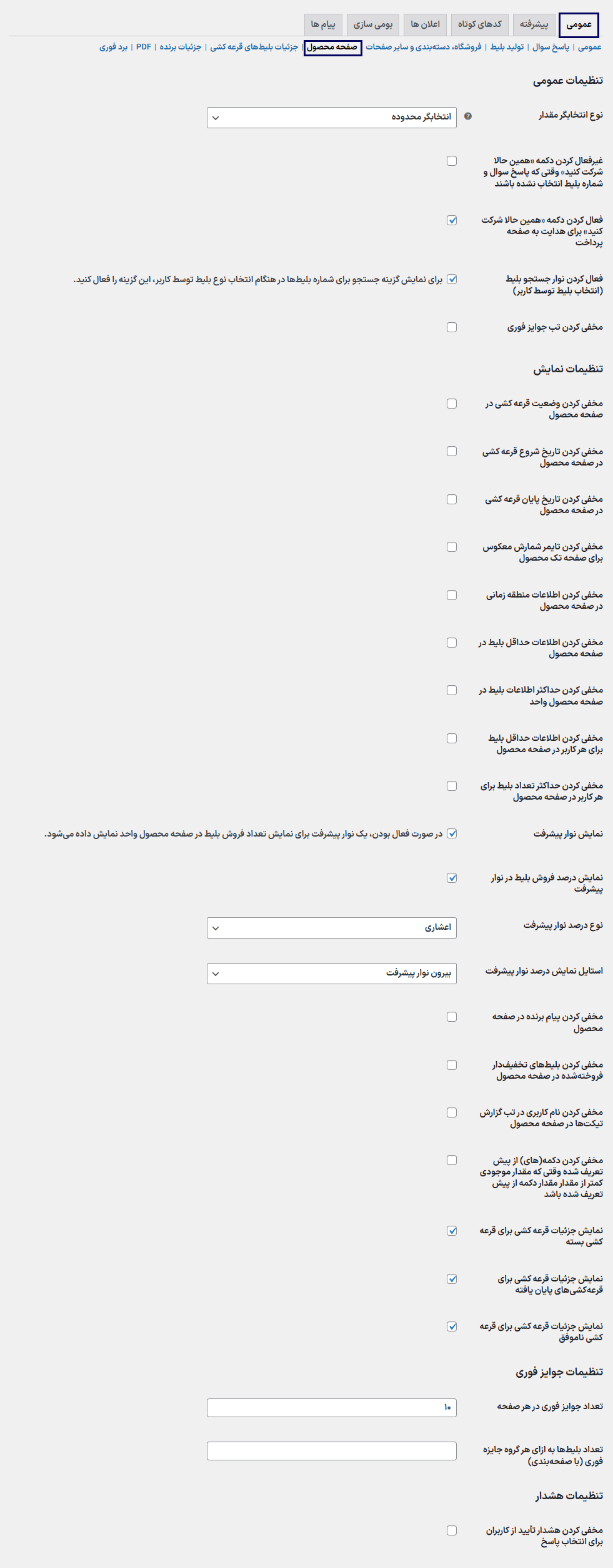 کاربران شما میتوانند جزئیات جایزه را در صفحه فروشگاه مشاهده کنند. - امکان قرعهکشی در صفحه تک محصول