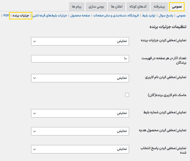 مسابقه -> تنظیمات -> پیشرفته -> اطلاعات Cron - چگونه میتوانم برندگان دستی قرعهکشی خصوصی را انتخاب کنم؟