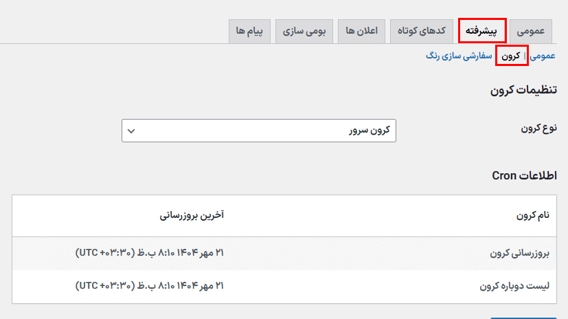 همچنین، لطفاً مراحل زیر را برای اطلاع از آخرین بهروزرسانی اطلاعات cron در افزونه ما دنبال کنید.