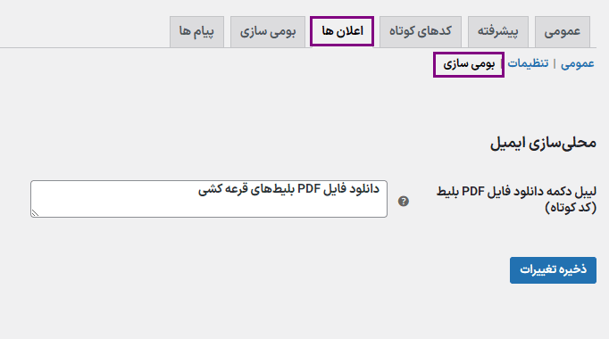 (۱) میتوانید پیامها و نحوه نمایش در بخش کاربری را با استفاده از تنظیمات محلیسازی و پیامها سفارشی کنید.