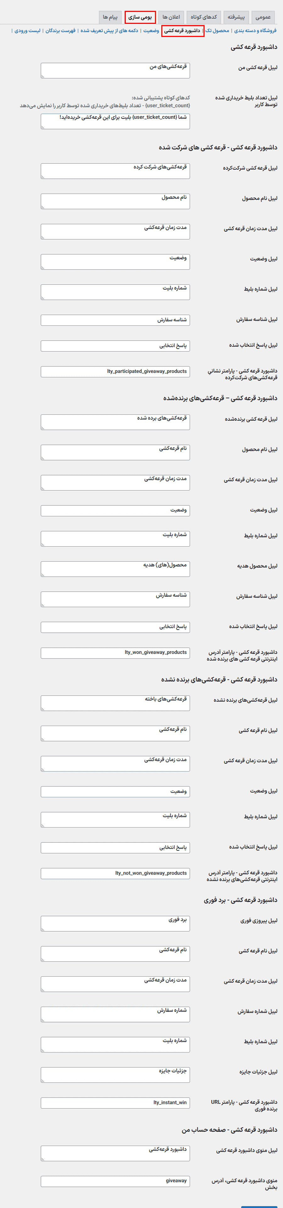 - چگونه میتوانم کلمه «Giveaway» را در بخش کاربری (Frontend) سفارشی کنم؟