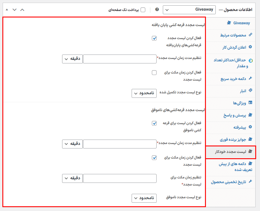 - اجرای قرعهکشی با مدت زمان محدود و نامحدود