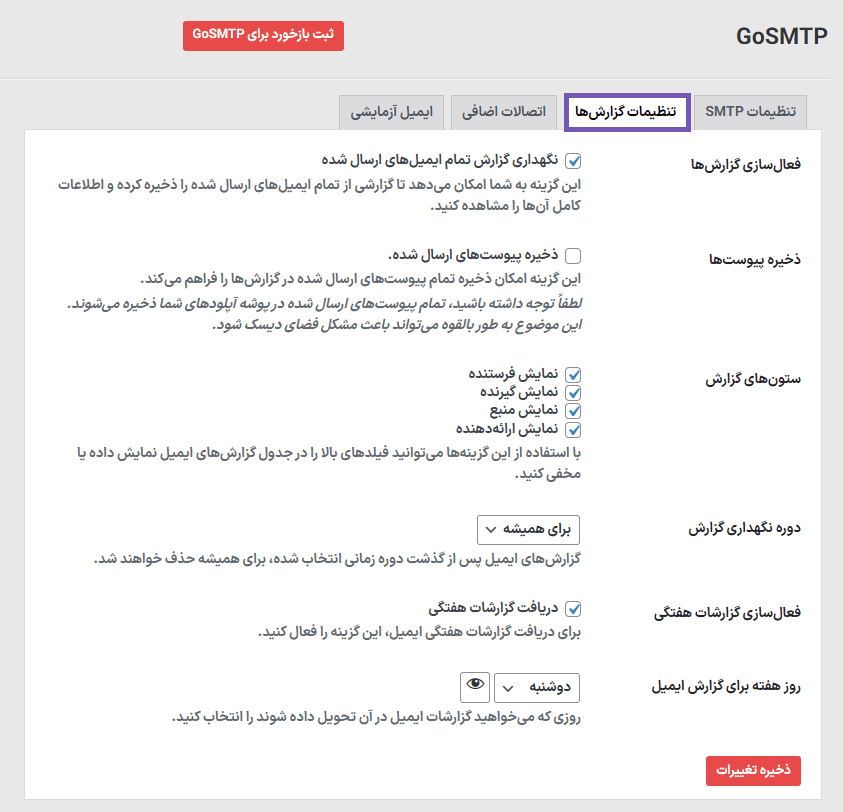 تنظیمات گزارش ها در افزونه گو اس ام تی پی پرو | ارسال ایمیل از طریق SMTP برای وردپرس