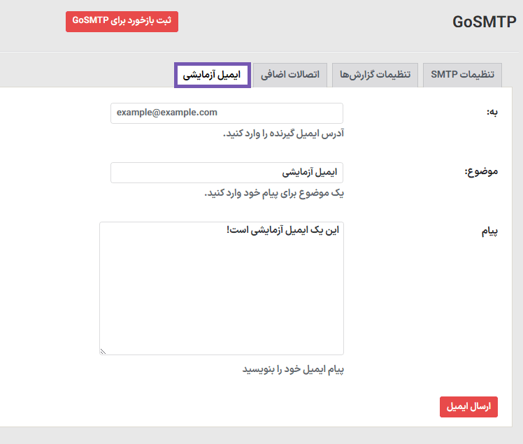 ایمیل آزمایشی در افزونه گو اس ام تی پی پرو | ارسال ایمیل از طریق SMTP برای وردپرس