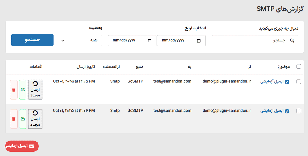 گزارش های ایمیل در افزونه گو اس ام تی پی پرو | ارسال ایمیل از طریق SMTP برای وردپرس