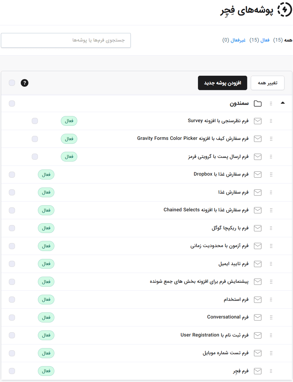 برای پیوندهای ویرایش سریع، به نماد Fetcher درون خطی در کنار Gravity Forms آنها مراجعه کنید. - فرمهای خود را با پوشهها آزاد کنید