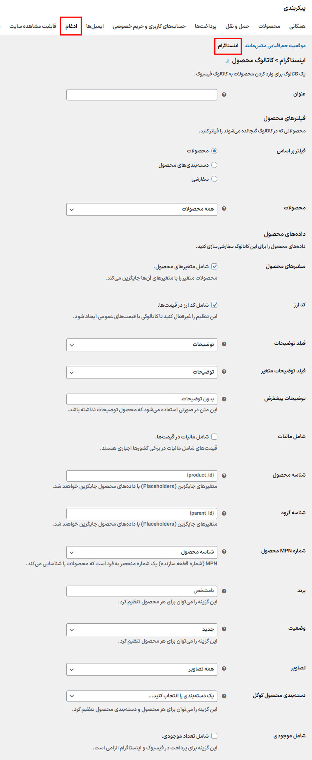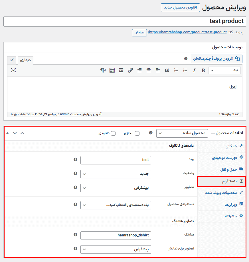 دادههای محصول در افزونه همگام سازی محصولات ووکامرس با اینستاگرام