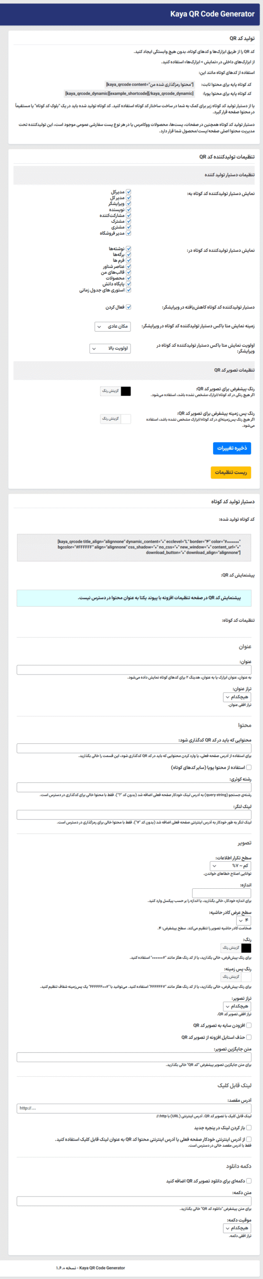 • محتوای دینامیک: [kaya_qrcode_dynamic][example_shortcode][/kaya_qrcode_dynamic].