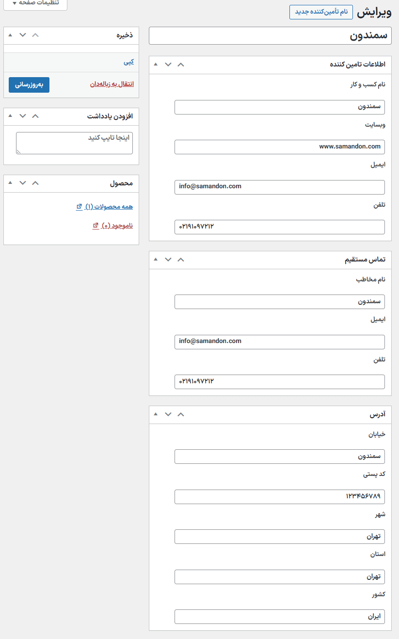 افزودن تأمینکننده جدید در افزونه مدیریت تامینکنندگان برای ووکامرس