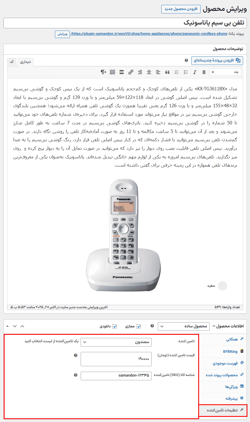 - همچنین میتوانید یک SKU تأمینکننده جداگانه به هر محصول اختصاص دهید.