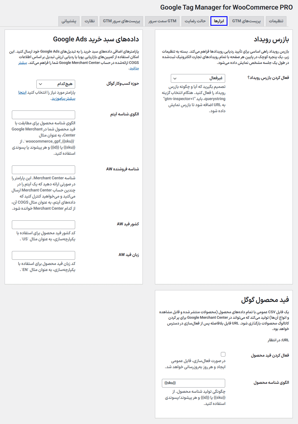 ابتدا مطمئن شوید که افزونه Google Tag Manager برای ووکامرس فعال و در فروشگاه ووکامرس شما فعال است.
