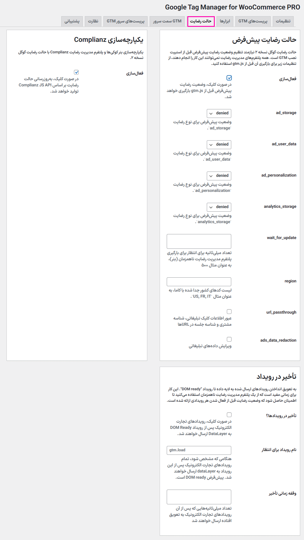 - قبل از ارسال هرگونه داده، از رضایت قانونی کاربر پشتیبانی میکند (نیاز به تنظیم دستی دارد)