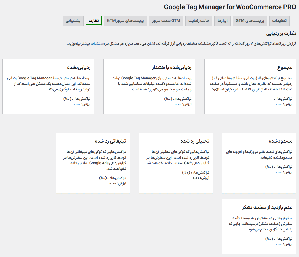 پس از ذخیره قطعه کدهای GTM، افزونه شروع به ارسال رویدادها به DataLayer و Google Tag Manager میکند.
