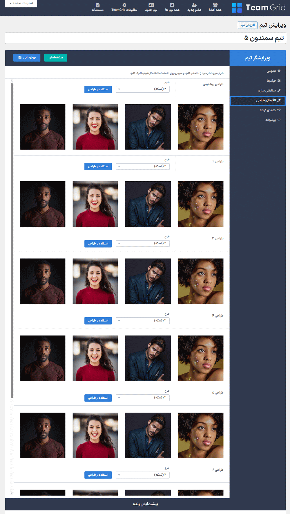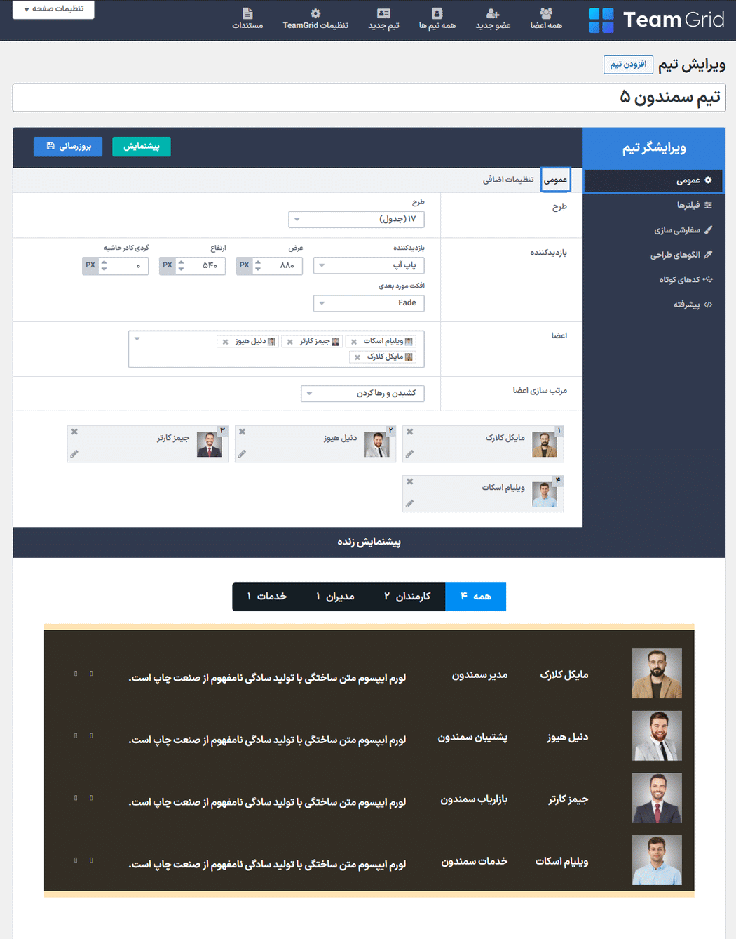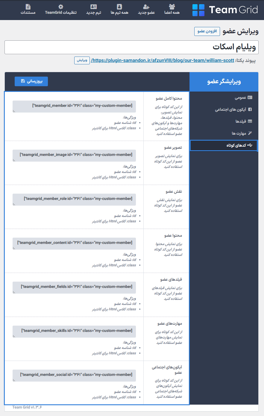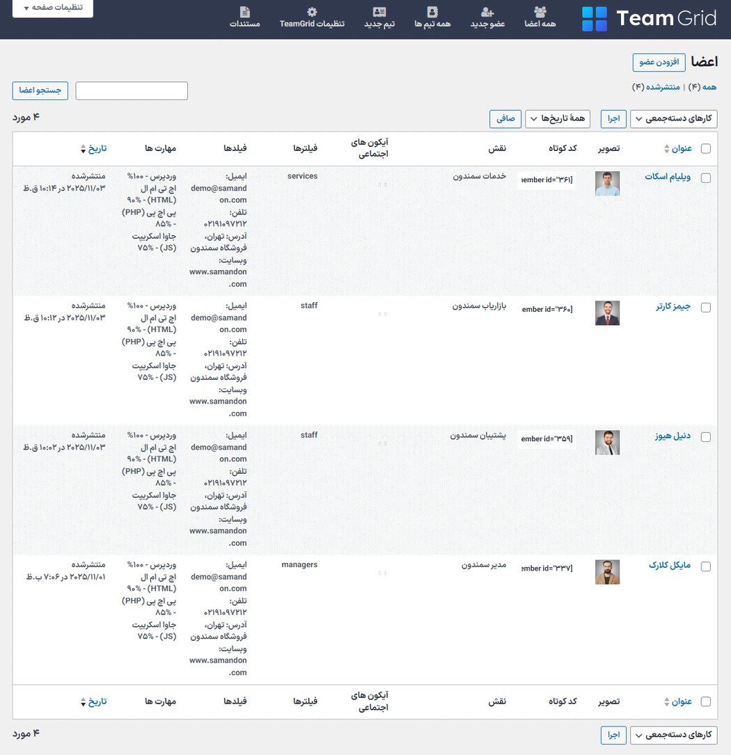- افزونه تیم گرید | نمایش ویترین اعضای تیم برای وردپرس دارای آیکونهای شبکههای اجتماعی اعضا. (فیسبوک، توییتر، لینکدین و غیره)