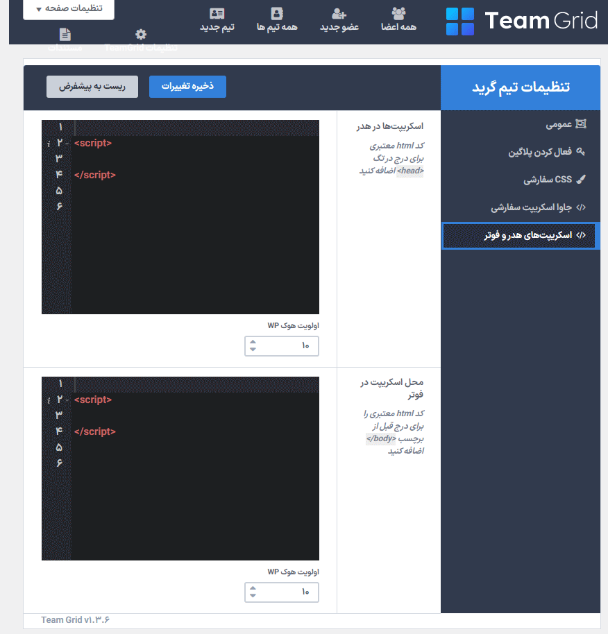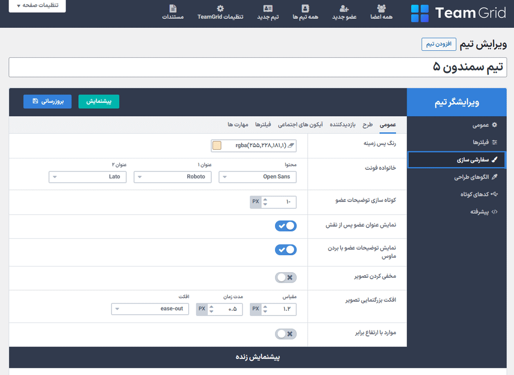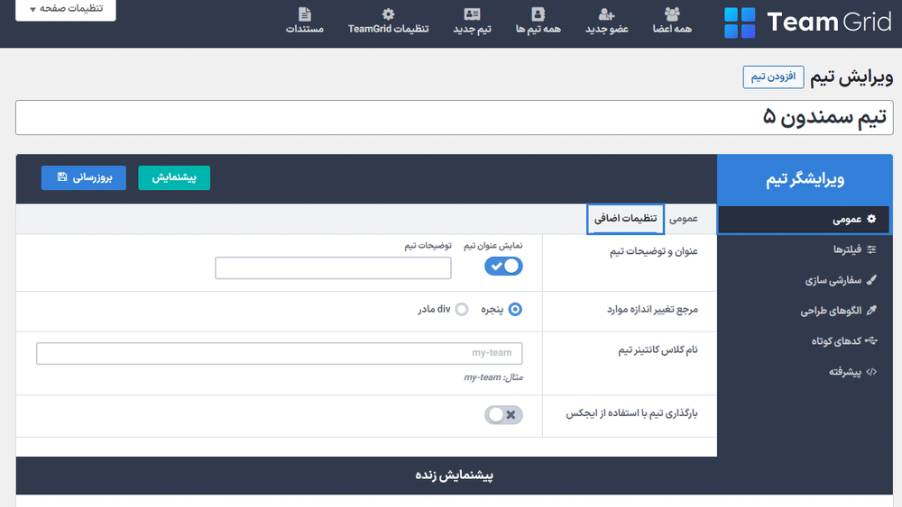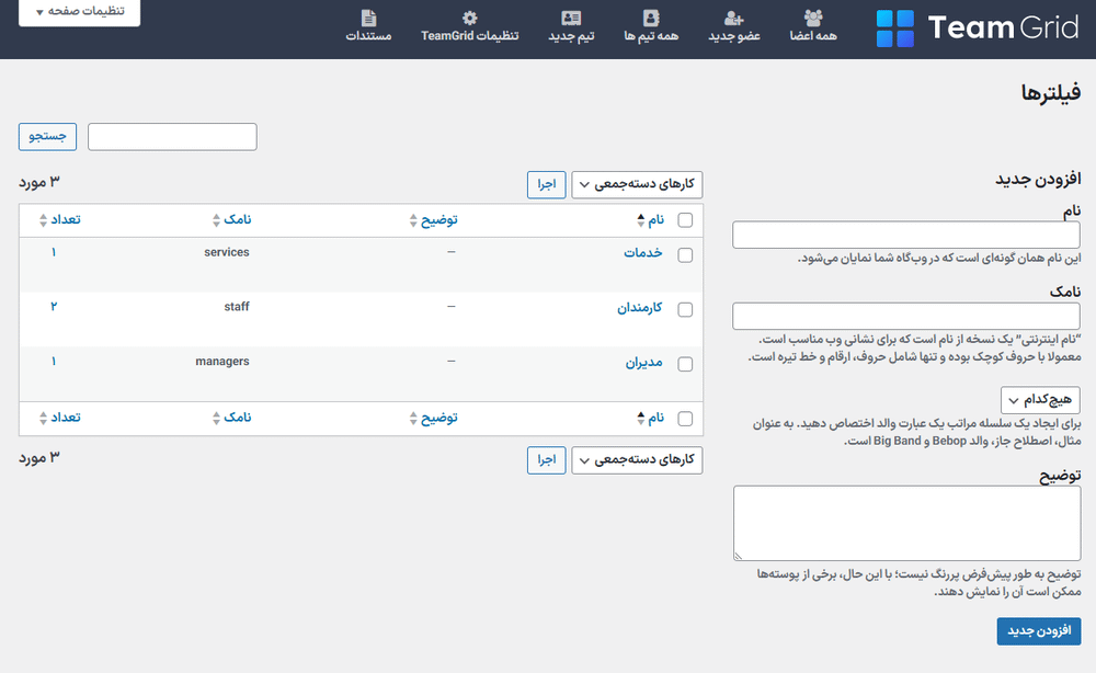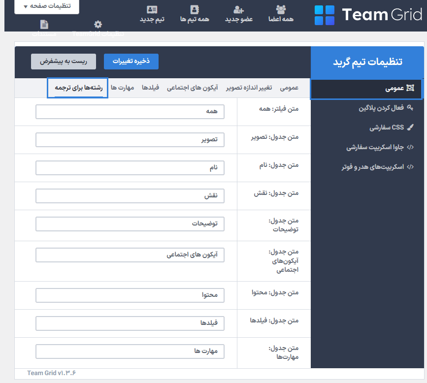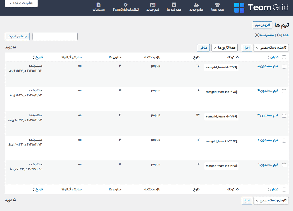 - افزونه تیم گرید | نمایش ویترین اعضای تیم برای وردپرس دارای آیکونهای شبکههای اجتماعی اعضا. (فیسبوک، توییتر، لینکدین و غیره)