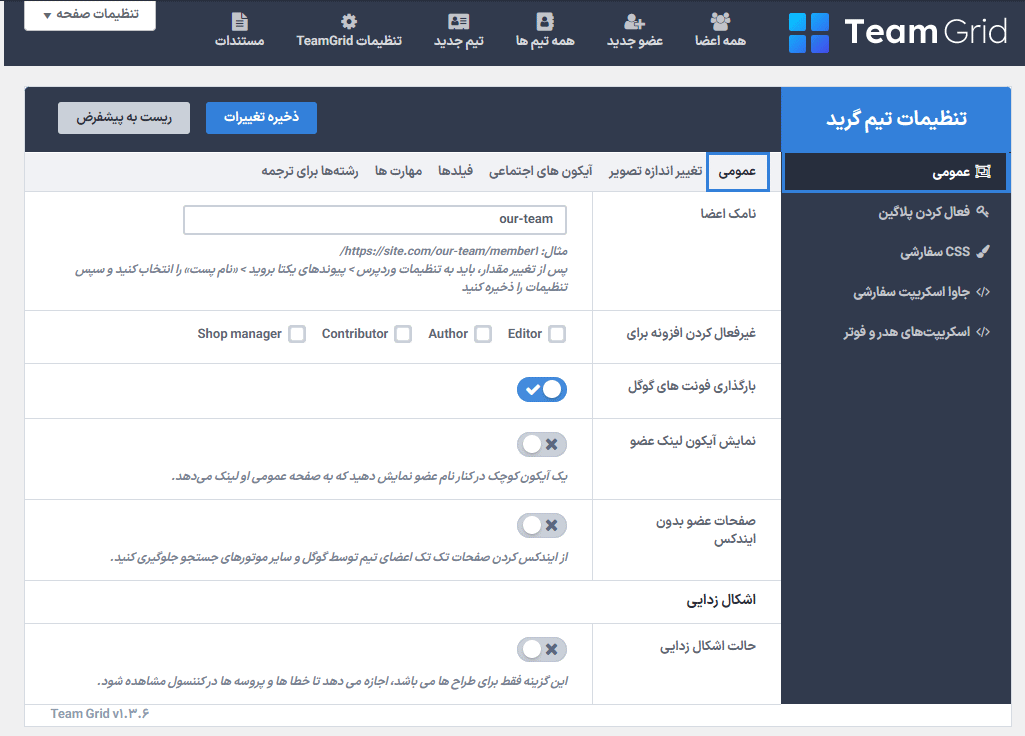 ویژگی های افزونه تیم گرید | نمایش ویترین اعضای تیم برای وردپرس | Team Grid – Team Member Showcase WordPress Plugin & Team Editor