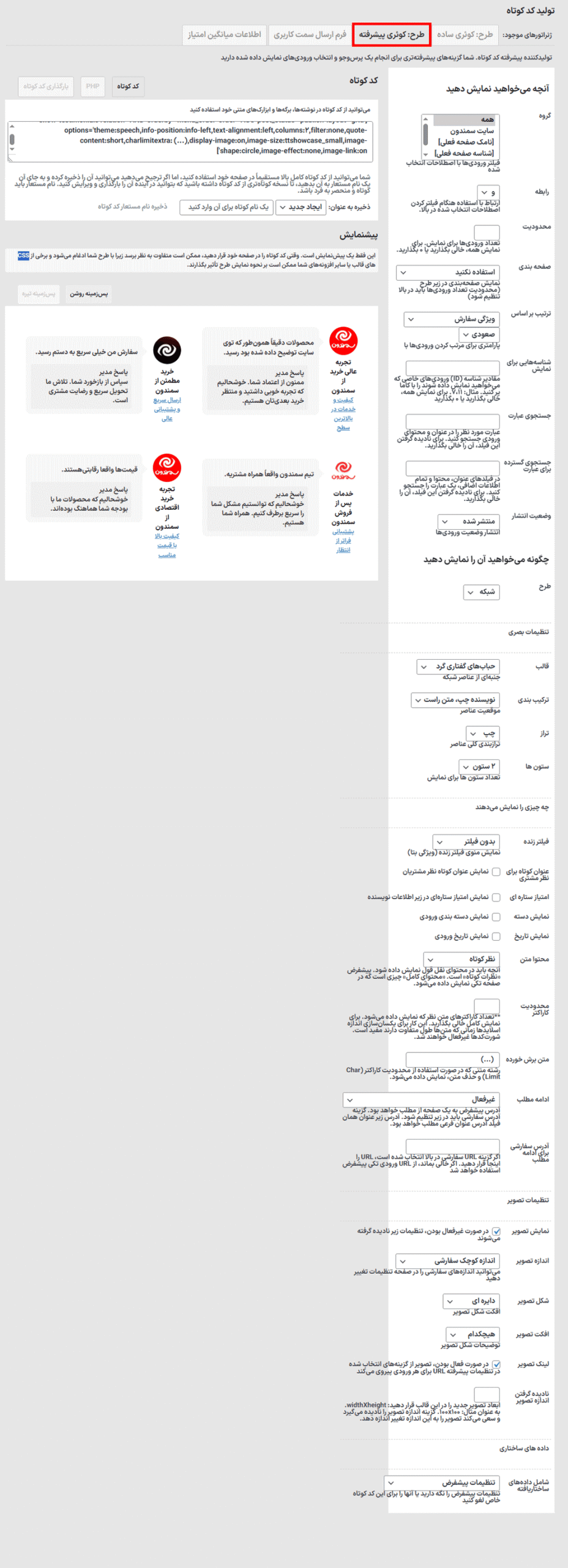 تولید کدکوتاه در افزونه Testimonials Showcase