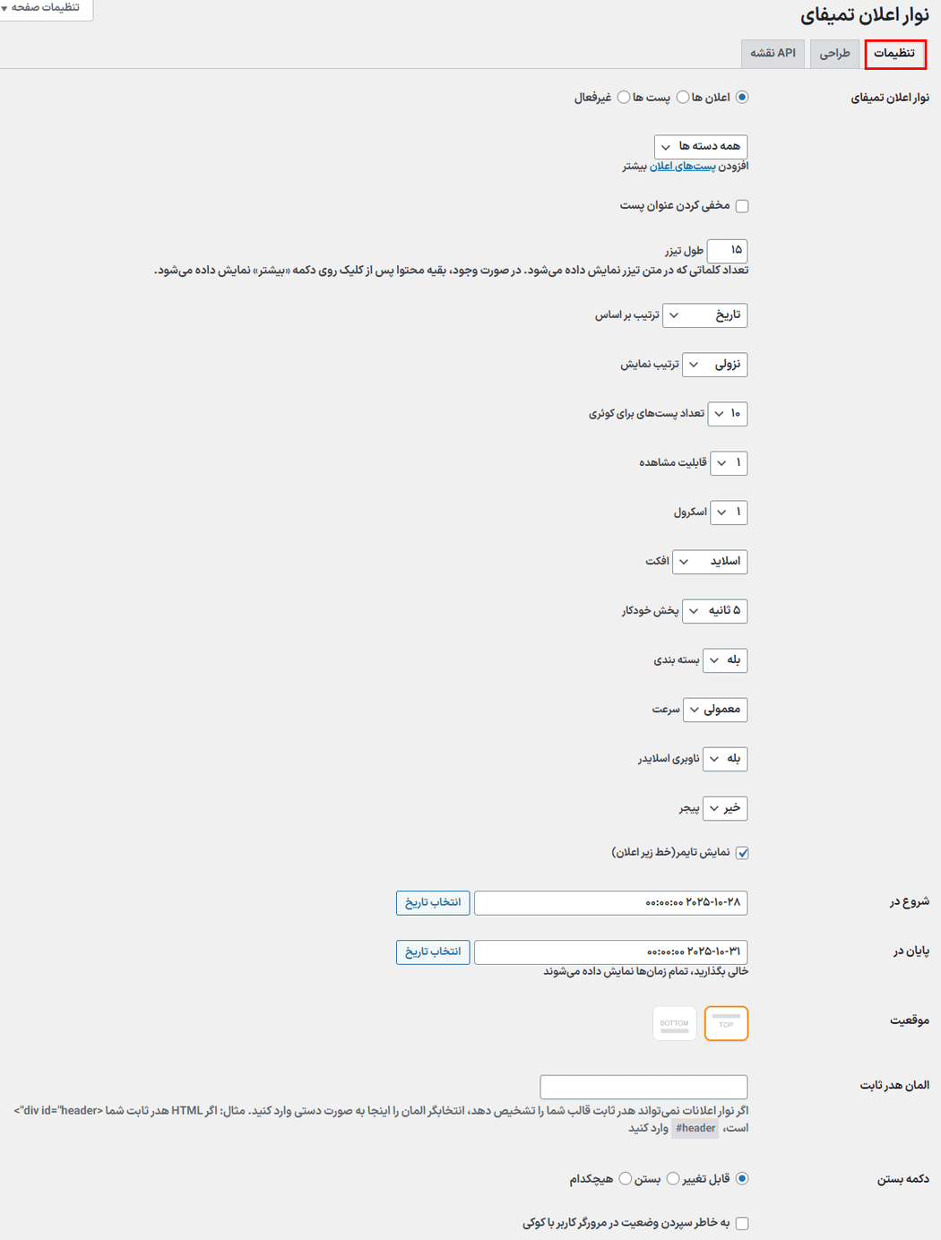 تنظیمات نوار اعلان افزونه ساخت نوارهای اعلان یا اطلاعیه برای وردپرس