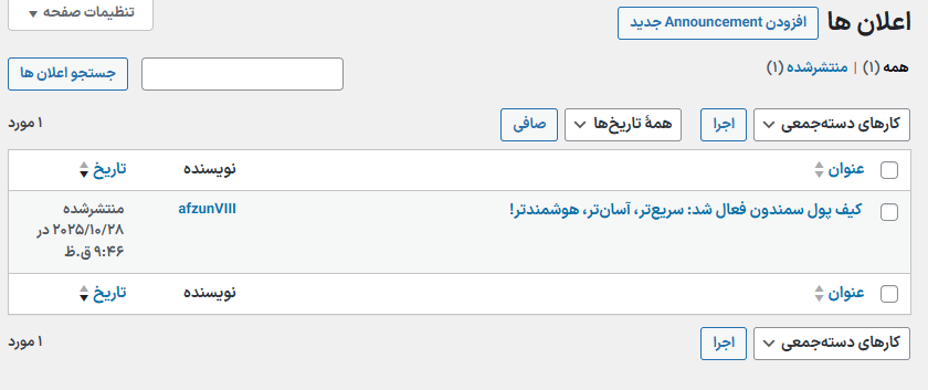 - Announcement Content = به متن/محتوای پستهای اعلان اشاره دارد.