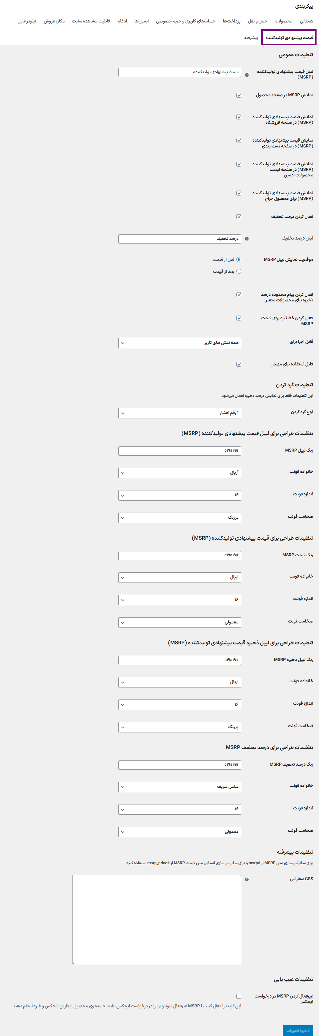 - قابلیت فعال/غیرفعال کردن قیمت تولیدکننده (MSRP/قیمت لیست) برای هر محصول