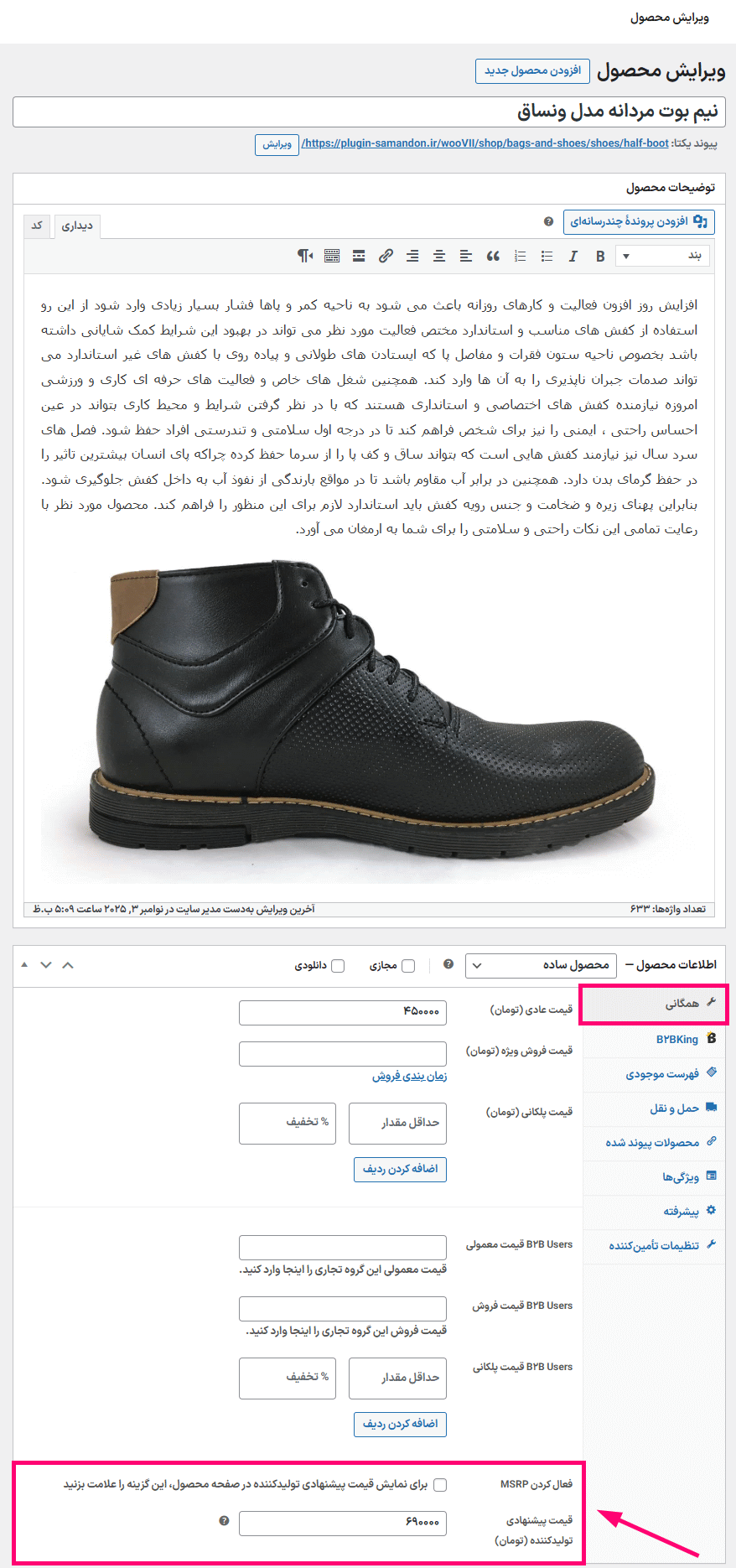 - افزونه قیمت پیشنهادی تولید کننده برای محصول ووکامرس دارای گزینه خط زدن قیمت تولیدکننده