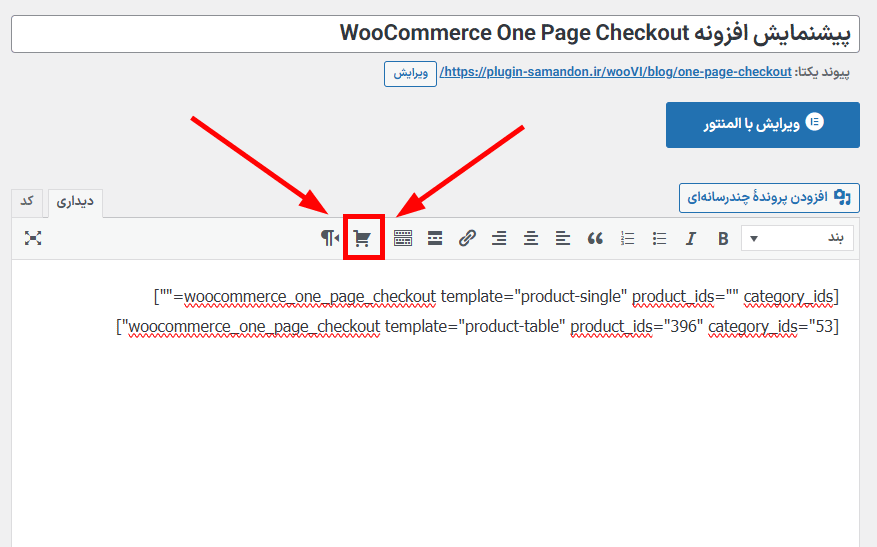 استفاده دستی از شورت‌کد در افزونه پرداخت تک صفحه ای برای ووکامرس