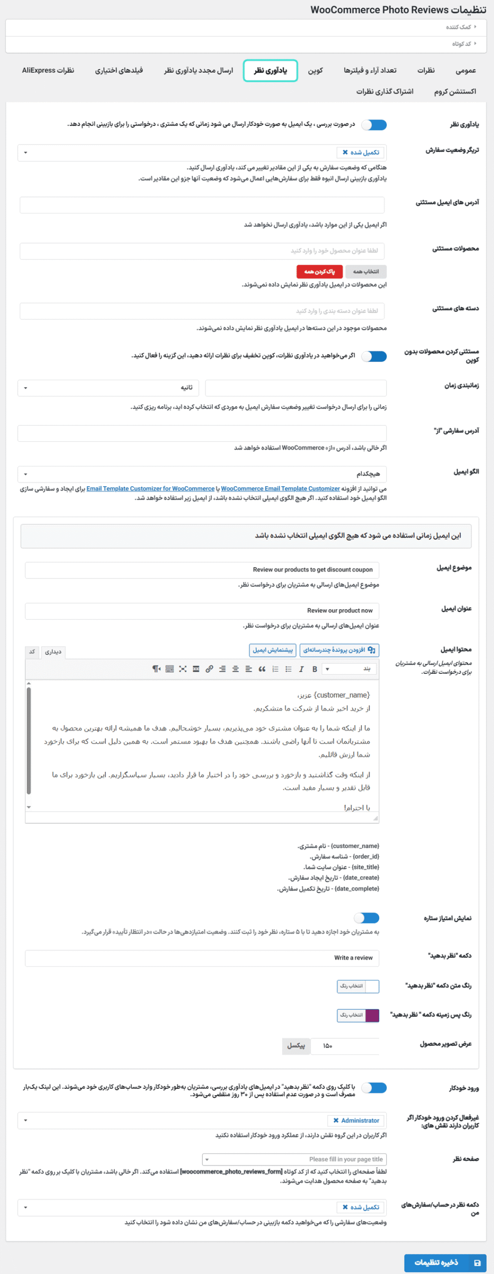 ارسال مجدد یادآوری نظر در افزونه WooCommerce Photo Reviews Premium