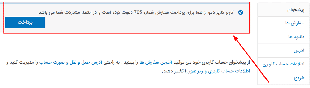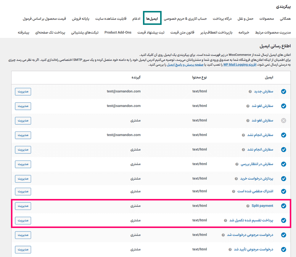 بخش کاربری افزونه تقسیم پرداخت برای سفارش ووکامرس: