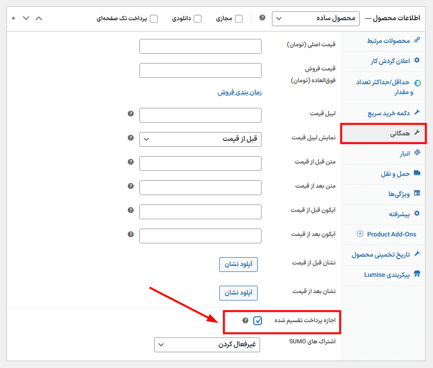 برای فعال کردن پرداخت سفارش تفکیکی برای محصول، همانطور که در تصویر زیر نشان داده شده است.