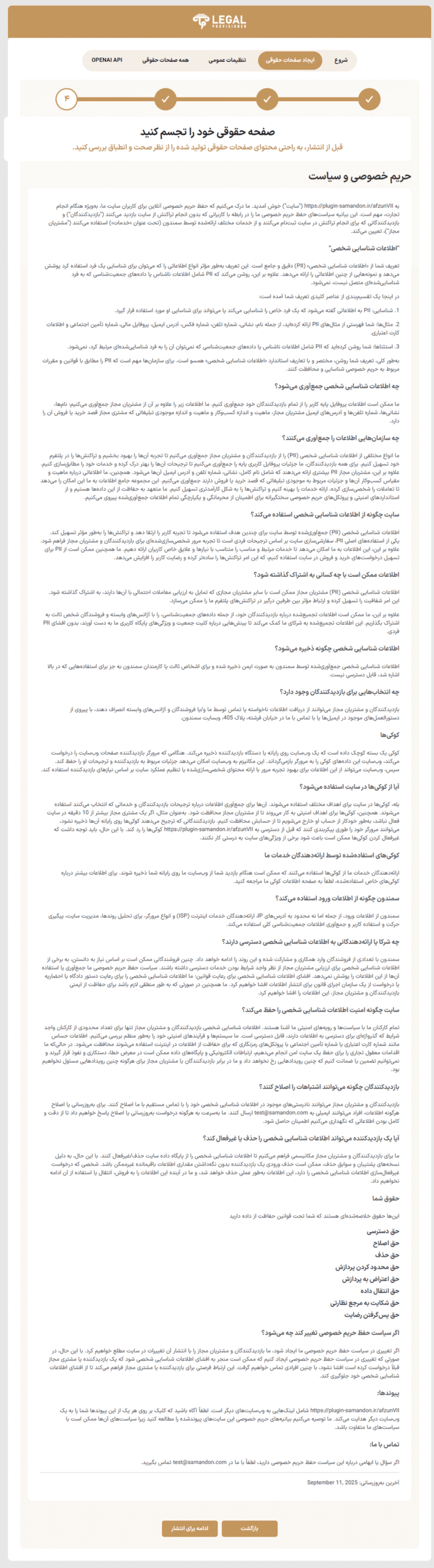 محتوای صفحات حقوقی را در ۳ مرحله آسان با استفاده از افزونه تولید کننده صفحات حقوقی وردپرس در سایت خود تولید و نمایش دهید.