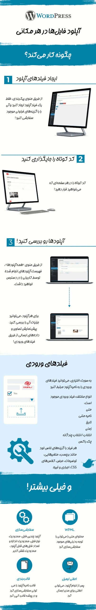 ویژگی های افزونه آپلود فایل وردپرس در هر مکانی | WordPress Upload Files Anywhere