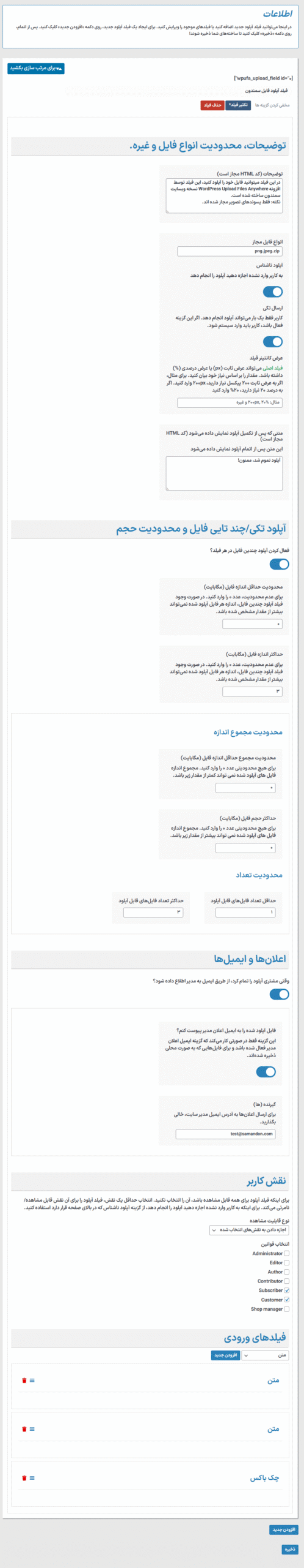 فیلدهای ورودی در افزونه WordPress Upload Files Anywhere