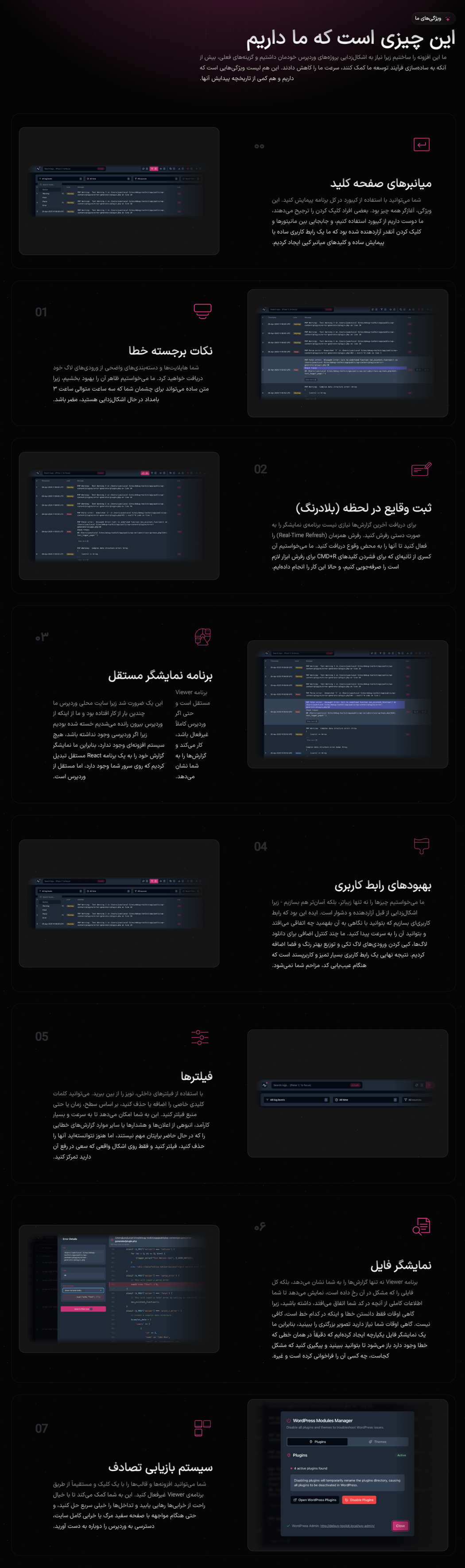 نیازی به انتظار، بهروزرسانی یا کاوش در فایلهای خود برای خواندن گزارشها نیست. برنامه نمایشگر آنها را فوراً نمایش میدهد. - سیستم بازیابی خرابی در افزونه WP Debug Toolkit Pro